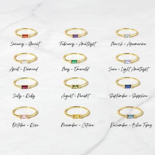 Gold Simple Baguette Birthstone Rings